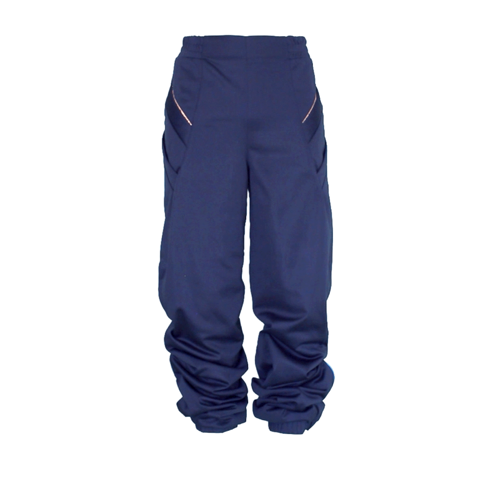 5-pocket track pant   |   external side pockets   |   pressure button leg cuffs   |   kangaroo back pocket